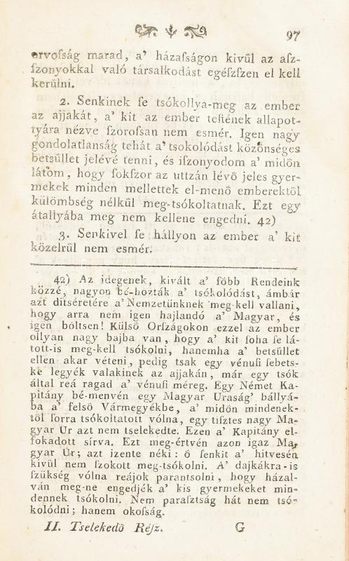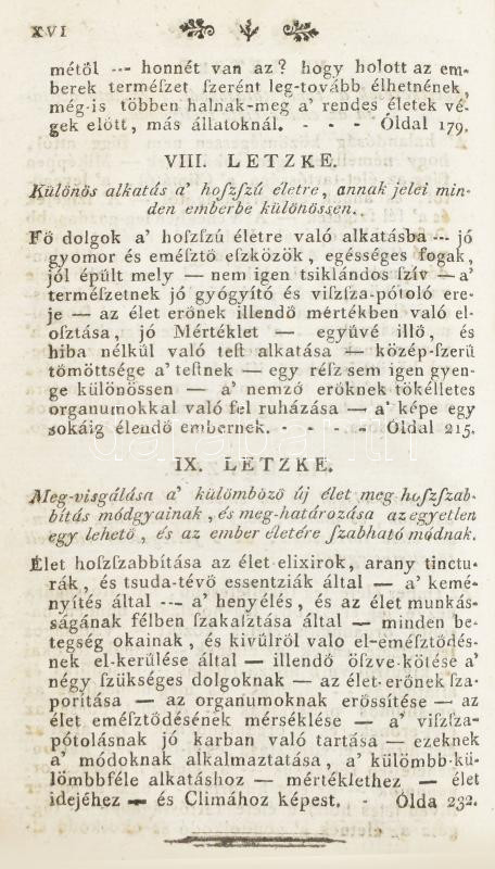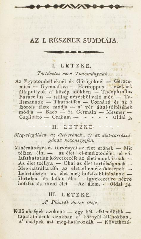 Christóf (Christoph) Wilhelm Hufeland: Az emberi élet meg-hoszszabításának mestersége... német nyelvből magyarra fordíttatott ... Kováts Mihály orvos doktor által. I-II. rész. Pesten, 1798, Trattner Mátyás, XVI+271+1;+4+259 p. Első kiadás! Korabeli félbőr kötésben, kopott borítóval, a borítón modern laminálással, a táblák belsején részben elvált (elülső), elvált (hátsó) papírborításokkal, címlapon szakadással, foltos lapokkal, egy helyen bejegyzéssel (I. rész 271.), possessori bejegyzéssel.