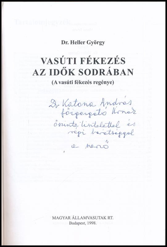 Heller György: Vasúti fékezés az idők sodrában. (A vasúti fékezés regénye.) A szerző, dr. Heller György (1922-2012) által DEDIKÁLT példány. Vasúthistória Könyvek. Bp., 1998, MÁV. Kiadói papírkötés. Ritka!