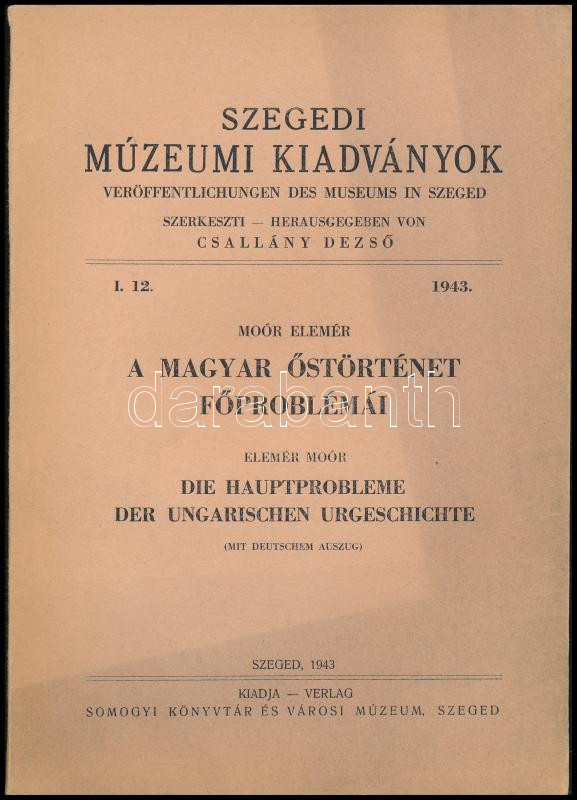 Moór Elemér: A magyar őstörténet főproblémái. Szegedi Múzeumi Kiadvány... https://www.darabanth.com/de/41-Gross-Auktion/41.1/Bucher/Bucher-Geschichte~16820/Moor-Elemer-A-magyar-ostortenet-foproblemai-Szegedi-Muzeumi-Kiadvanyok-I-13-1943-Sze~II2962434