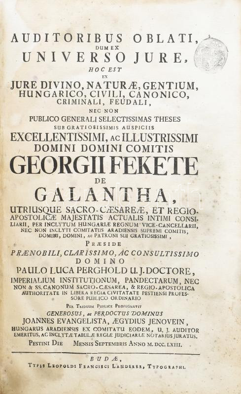 Schmitt Miklós: Palatini Regni Hungariae. Bello paceque clarisiimi, e diversis scriptoribus Patriis, Exteris, Diplomatibus, aliisque instrumentis literariis eruti, ac Perbrevi Narratione A primis temporibus Sancti Stephani Hungarorum Regis, Ad nostram usque aetatem cum accurata Chronologia deducti. Editio tertia. [Nagyszombat] Tyrnaviae, 1760. Typis Academicis Societatis Jesu. Korabeli javított félbőr kötésben, címlap restaurált, foltokkal