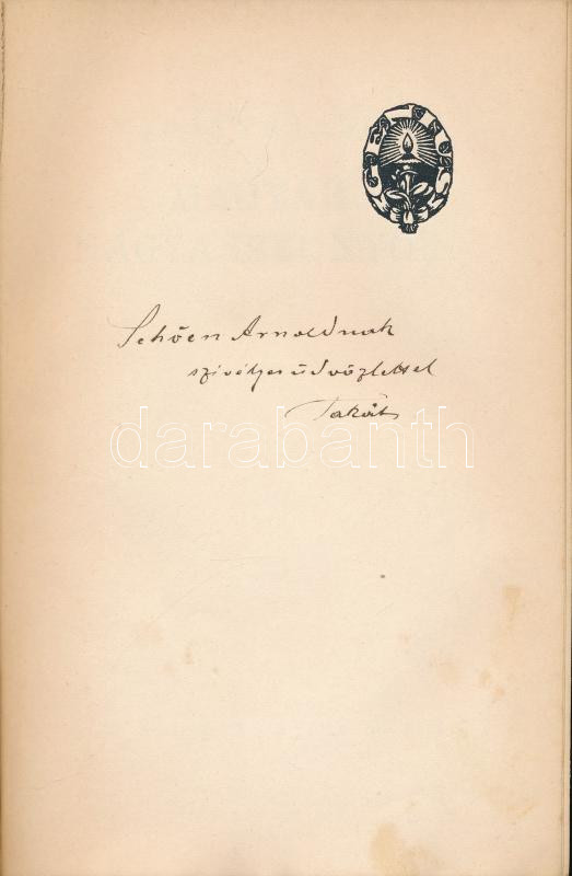 Takáts Sándor: Magyar nagyasszonyok. [Bp.,1926],Genius, (Korvin-ny.),538+1 p. Első kiadás. Kiadói illusztrált papírkötés, foltos borítóval, a gerincen kis hiánnyal, javított kötéssel. A szerző, Takáts Sándor (1860-1932) történész levéltáros által Schoen Arnold (1887-1973) művészettörténész, levéltáros, múzeumigazgató DEDIKÁLT példány.