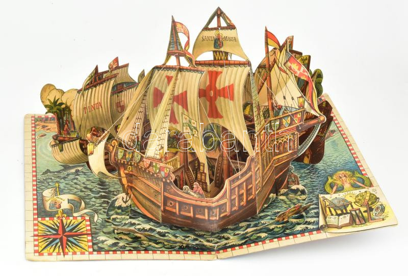 cca 1960 Vojtech Kubasta: Christopher Columbus Genuensis. Santa Maria. Praha, én., Artia. Térbeli mesekönyv. Kiadói félvászon kötésben, a borítón kis kopásnyomokkal. 3 helyen javított, de alapvetően jó állapotban. Kifejezetten gyűjtői darab.