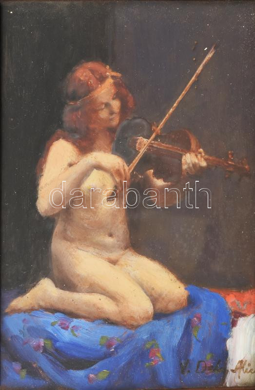 Dely Alice (Béli Vörös Ernőné) (1887 - ?) Akt hegedűvel. Olaj, Karton.... https://www.darabanth.com/de/41-Gross-Auktion/41.1/Gemalde-und-Grafiken/Klassische-Gemalde-und-Grafiken~16772/Dely-Alice-Beli-Voros-Ernone-1887-Akt-hegeduvel-Olaj-Karton-Jelzett-uvegezett-dek~II2976519