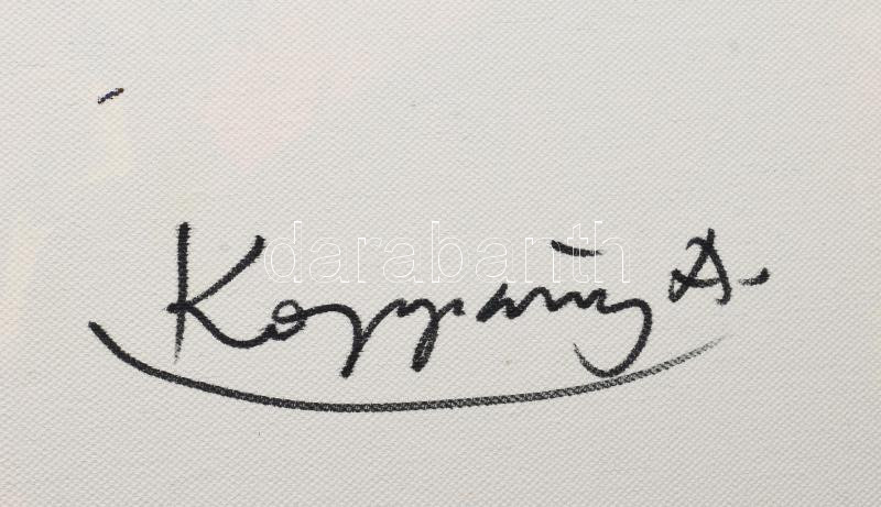 Koppány Attila (1947-): Kockafa. Akril, applikáció, vászon. Jelzett a hátoldalán. Fakeretben. 70x50 cm. / acrylic and application on canvas, signed on the reverse