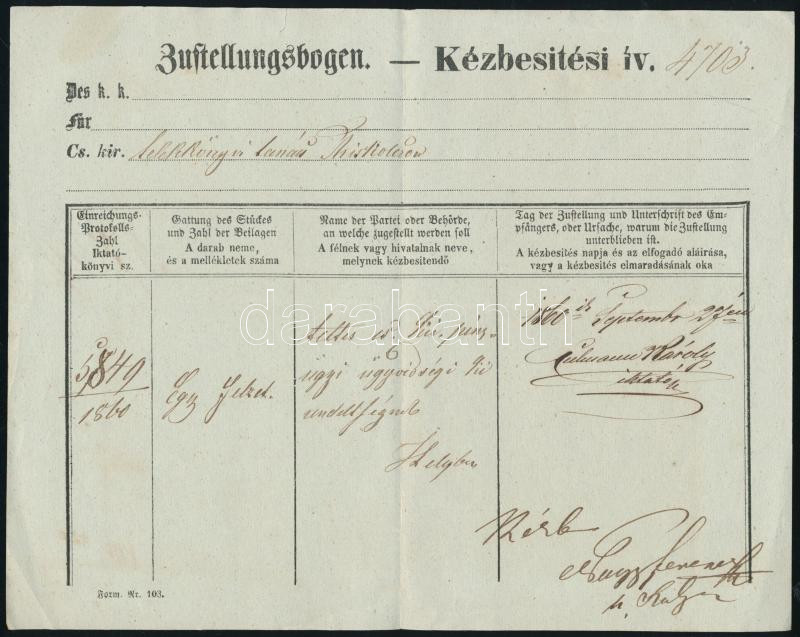 Beschreibung: 1860 Kézbesítési ív / Delivery certificate