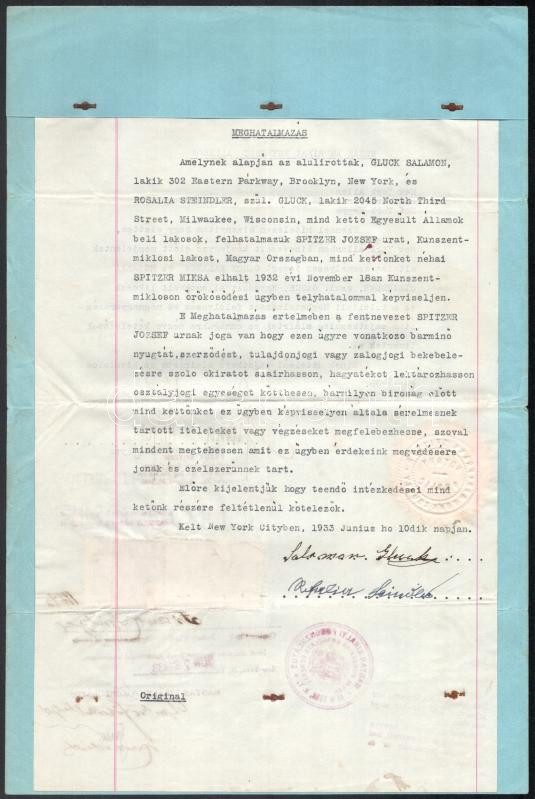 1933 Meghatalmazás konzuli bélyegekkel https://www.darabanth.com/de/41-Gross-Auktion/41.1/Kunst-Dokumente-andere-Sammelgebiete/Dokument~16819/1933-Meghatalmazas-konzuli-belyegekkel~II3002980