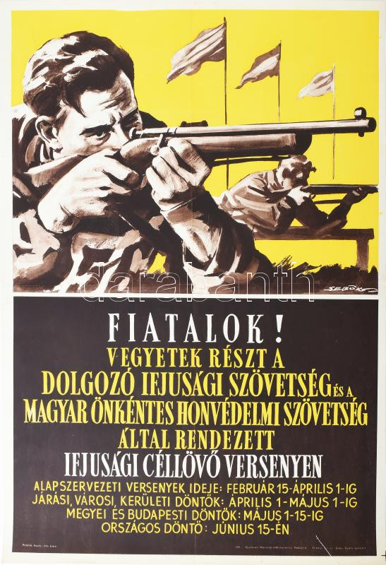cca 1950 Fiatalok! Vegyetek részt az Ifjúsági Céllövő versenyen..., pl... https://www.darabanth.com/de/41-Gross-Auktion/41.1/Kunst-Dokumente-andere-Sammelgebiete/Drucksachen~16793/cca-1950-Fiatalok-Vegyetek-reszt-az-Ifjusagi-Cellovo-versenyen-plakat-Sebok-grafikaja~II3004540