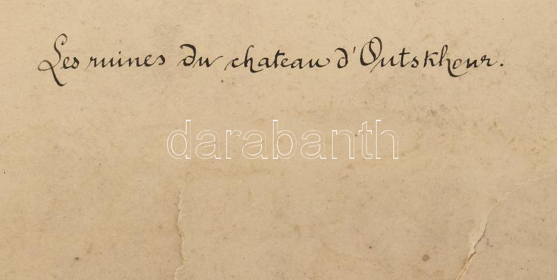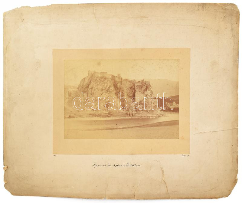 cca 1886 Déchy Mór (1851-1917): "Les ruines du chateau d'Outskhour". Atskuri/Atsquri várának romjai (Kaukázus, Grúzia). Dóczy Mór geográfus fotója. Fotó kartonon, feliratozott, sérült, foltos kartonnal, a kartonon sarkán hiánnyal, 13,5x19 cm, karton: 32x39 cm/ cca 1886 Mór Déchy (1851-1917): "Les ruines du chateau d'Outskhour". Ruins of Atskuri/Atsquri castle, Caucasus, Georgia. Photo on board, damaged, spotty, with lack on the board's corner, 13,5x19 cm, board: 32x39 cm/