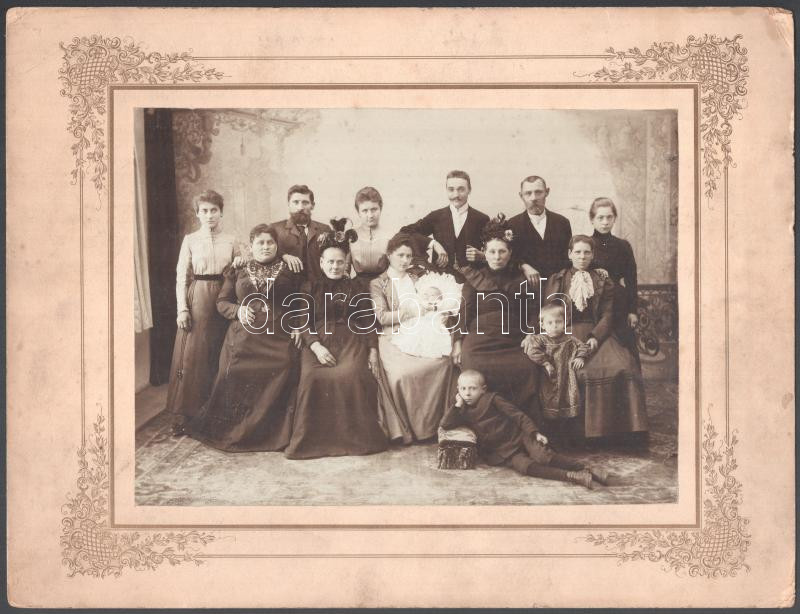 Beschreibung: cca 1900 Három generációs családi csoportkép, jelzés nélkül, ezüst zselatinos fotópapíron, 16,3x22,5 cm, karton 25x32,5 cm