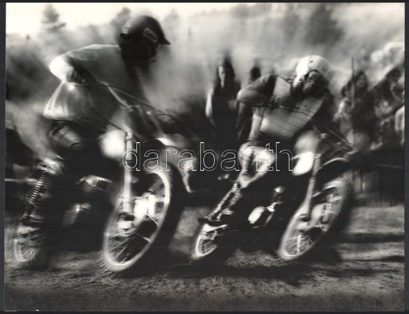 cca 1977 Gebhardt György (1910-1993) budapesti fotóművész hagyatékából 1 db vintage fotóművészeti alkotás, feliratozva (Motocross), ezüst zselatinos fotópapíron, 30x38,5 cm