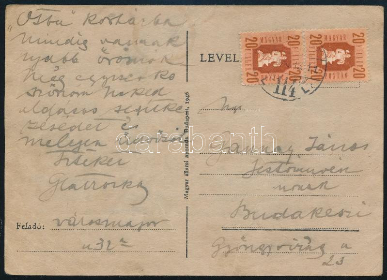 Beschreibung: 1947 Glatz Oszkár festő által írt levelezőlap