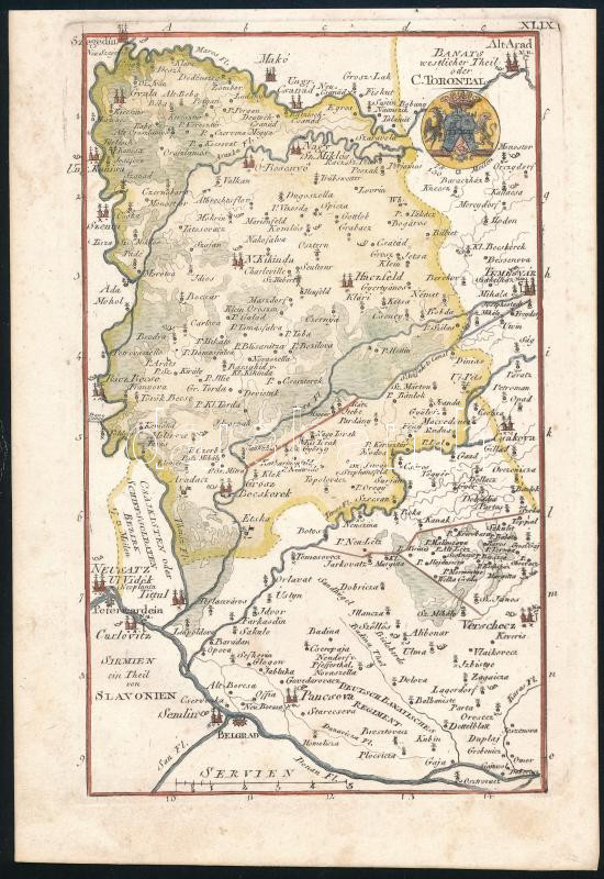 1804 Czetter Sámuel (1765-1829 k.): Torontal vármegye térképe. C[omitatus] Torontal In: [Korabinszky János Mátyás]: Korabinsky, Johann Matthias: Atlas Regni Hungariae Portatilis LVIII. Bécs, 1804. Schaumburg und Compagnie, színezett rézmetszet,10,5x16,5 cm.