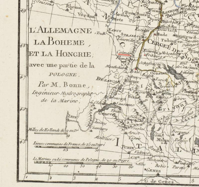 Bonne, Rigobert: L'Allemagne, La Boheme, et La Hongrie; avec une partie de Pologne (Németország, Bohémia és Magyarország térképe, és Lengyelország egy része) Rézmetszetű térkép.