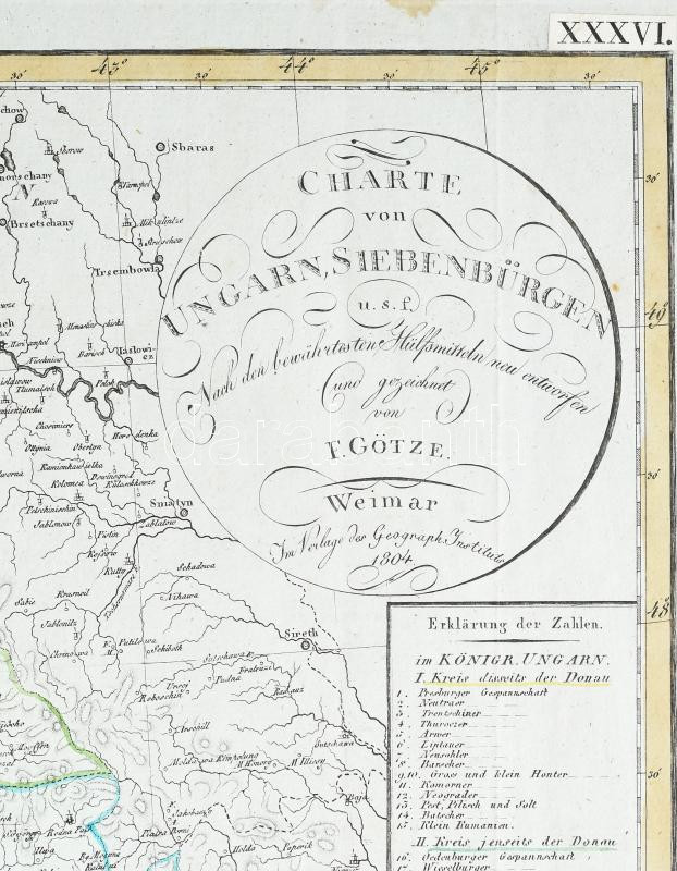 Charte von Ungarn, Siebenburgen u.s.f von F. Gotze 1804. - Magyarország, Erdély stb térképe. Színezett rézmetszet. Götze, Johann August Ferdinand (1773-1817/9), Weimar, 1804. Geographisches Institut. 594x410 mm
