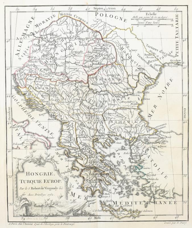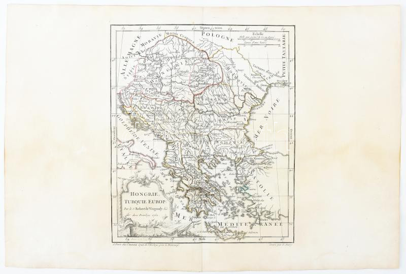 Hongrie, Turquie Europ. Par le s. Robert de Vaugondy,. (Párizs, 1762.) E. Dussy színezett rézmetszető térképe