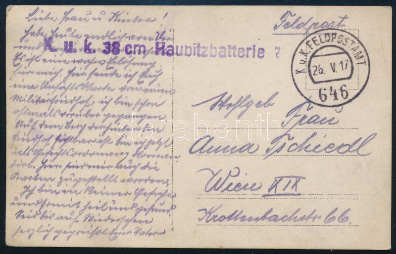 1917 KUK 46. Szegedi Gyalogezred temetője valahol a fronton, 38cm tüzé... https://www.darabanth.com/de/41-Gross-Auktion/41.1/Kunst-Dokumente-andere-Sammelgebiete/Militaria~16790/1917-KUK-46-Szegedi-Gyalogezred-temetoje-valahol-a-fronton-38cm-tuzer-szazad-tabori-belyegzC5~II3004352