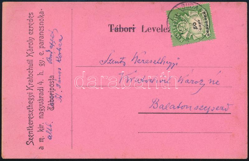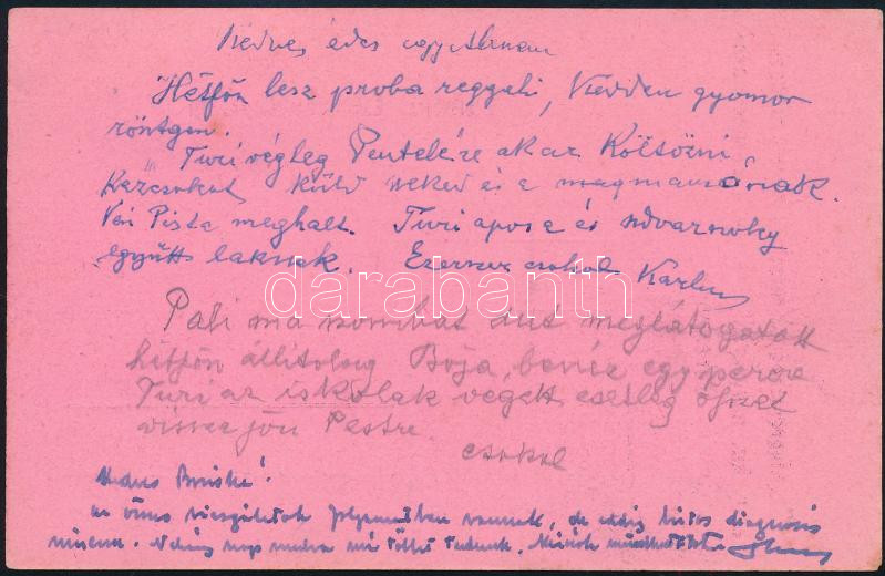 1946 Szentkereszthegyi Kratochwill Károly altábornagy a m. kir. nagyváradi 4. honv. gyalogezred paracsnokának autogárf levele kórházból, felesége részére Távolsági levelezőlap 26. emelésű inflációs 50 000 AP tarifával.