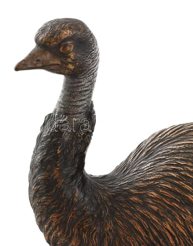 Beschreibung: Franz Xaver Bergmann (1861-1936): Emu. Hidegen festett bronz, 1900 körül, jelzett, m: 15,5 cm / Wiener bronze, Franz Xaver Bergmann, signed