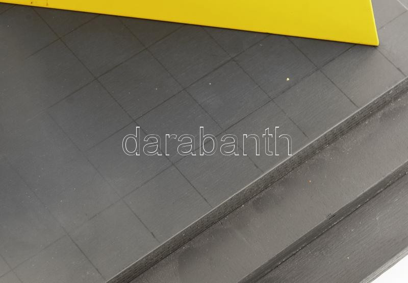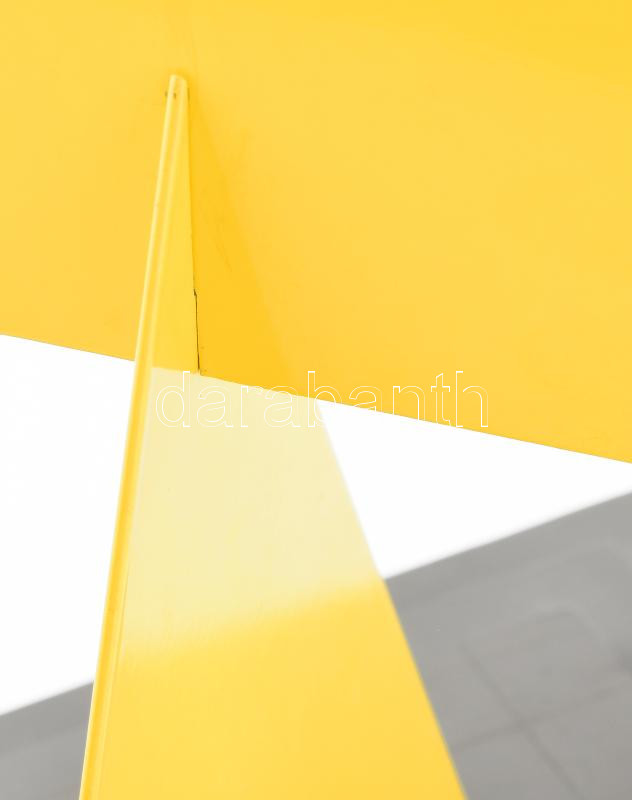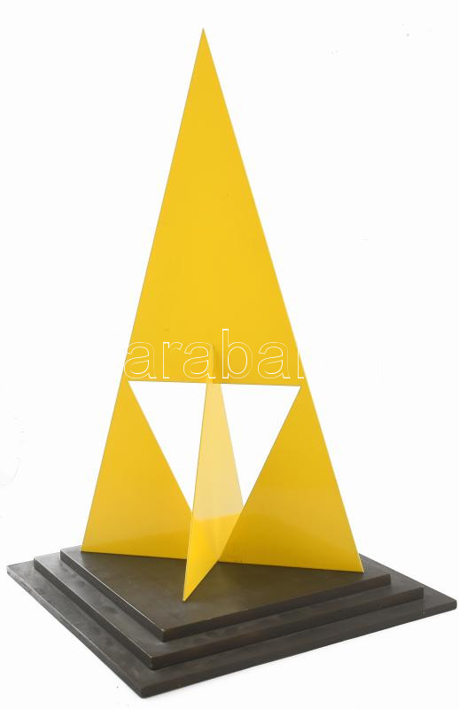 Ingo Glass (1941-2022): Holocaust emlékmű terv, Bp., VII. ker. Festett acéllemez, fa talapzaton. M 1:10. Jelzés nélkül, talapzat alján papírlapon Ingo Glass nyomtatott instrukcióival a műről és technikai adatairól. Magasság: 70 cm (talapzat nélkül). Apró kopásnyomokkal. / Ingo Glass (1941-2022): Holocaust memorial plan, Budapest, district VII. Painted steel, on wooden pedestal. M 1:10. Unsigned, with the instructions by Ingo Glass on a sheet on the pedestal. Height: 70 cm. With very slight surface wear.
