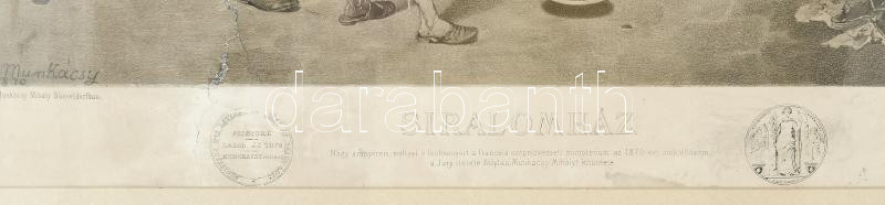 Munkácsy Mihály (1844-1900) festménye után, kőre rajzolta Kollarcz Ferenc (1825-1894): Siralomház. Litográfia, papír, jelzett a litográfián. XIX. sz. vége. Javított. Üvegezett fakeretben. 40,5x55 cm. Rendkívül ritka, tudomásunk szerint korábban nem szerepelt árverésen!