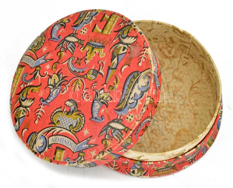 Beschreibung: cca 1920 Floris bonbonos doboz , Kozma Lajos (1884-1948) grafikus terve alapján. / cca 1920 Lajos Kozma designed Floris bonbon box 6,5 cm