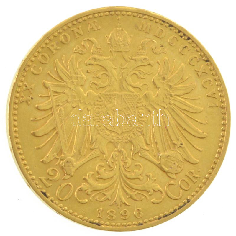 Ausztria 1896. 20K Au "Ferenc József" (6,77g/0.900) T:AU,XF apró ph / Austria 1896. 20 Corona Au "Franz Joseph" (6.77g/0.900) C:AU,XF small edge error Krause KM#2806