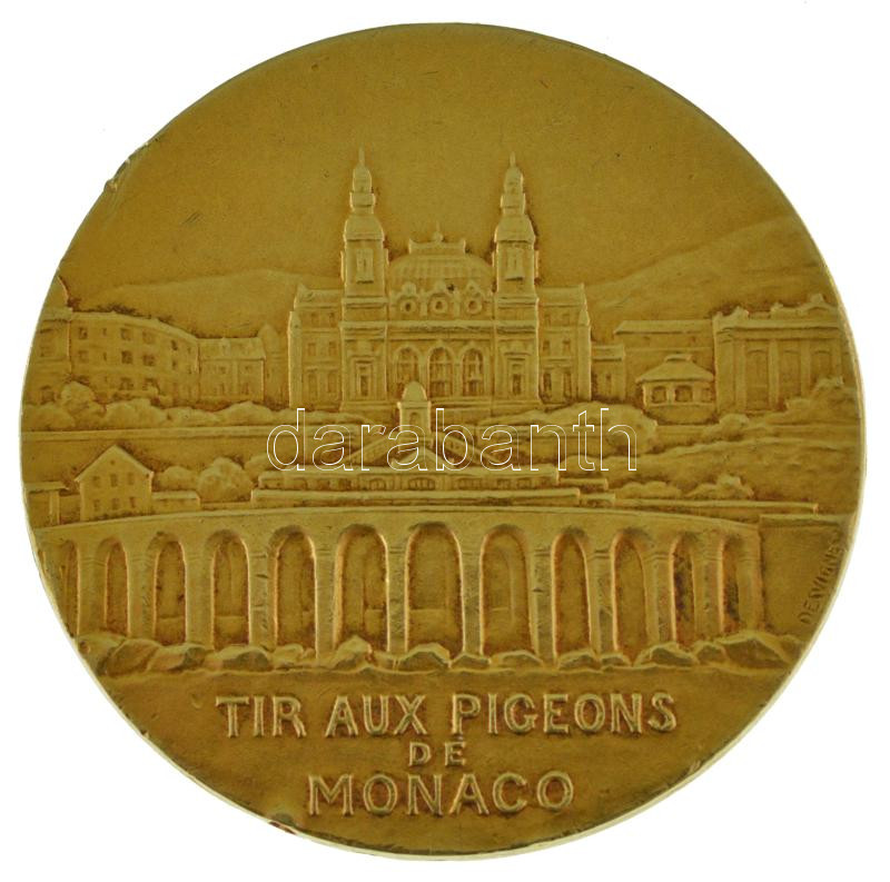 Monaco 1939. "Monaco-i galamblövészet" kétoldalas, peremén jelzett Au emlékérem, hátoldalán "20 Février 1939 - Grande Poule d'Essai" gravírozással, "OR" anyagjelzéssel (22,48g/0.585/36mm) T:AU,XF ph. Monaco 1939. "Tir Aux Pigeons de Monaco" double-sided, Au medallion, hallmarked on the edge, with "20 Février 1939 - Grande Poule d'Essai" engrave on the back, with "OR" material mark (22,48g/0.585/36mm) C:AU,XF edge errors