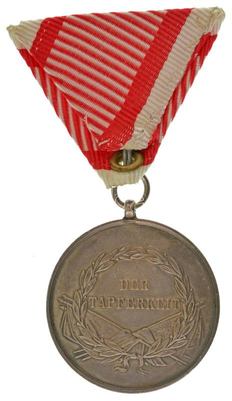 Hungary ~1870. "Silver Gallantry Medal, 1st Class" Ag decoration, hallmarked on the edge, with modern ribbon. Sign: Leisek C:XF NMK 129.