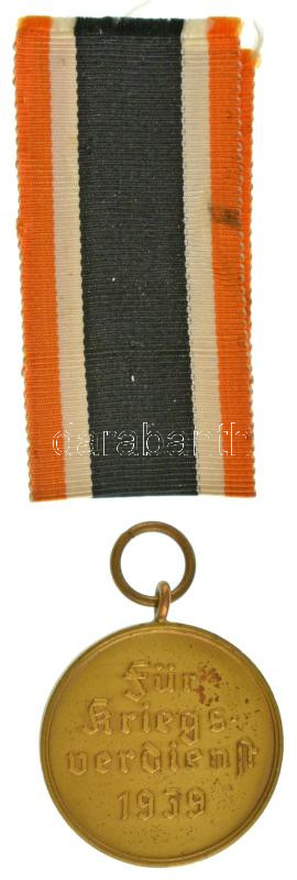 Német Harmadik Birodalom 1939. "Háborús Érdemérem" bronz kitüntetés eredeti mellszalaggal és eredeti papírtasakkal (32mm) T:AU patina German Third Reich 1939. "War Merit Medal" bronze decoration with original ribbon and original paper pouch (32mm) C:AU patina