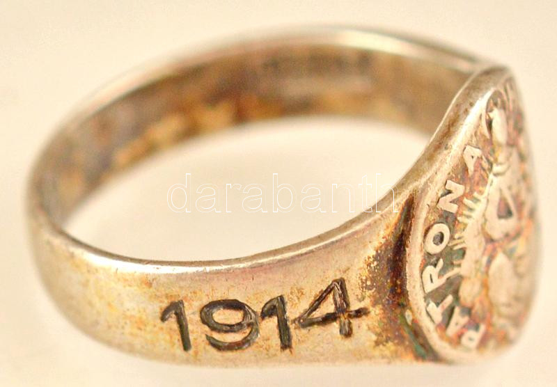 Beschreibung: Osztrák-Magyar Monarchia ~1915."1914-1915" jelzett Ag propaganda gyűrű "W. Singer" gyártói jelzéssel, Patrona Hungariae ábrázolással (2,75g/50-es méret) /