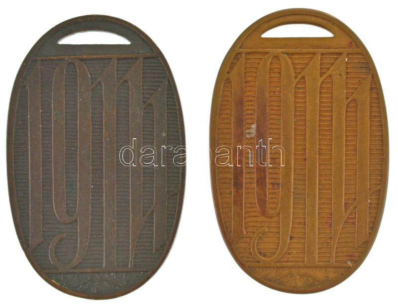Zutt Richard (1887-1938) 1914. "Hadsegélyező" ovális bronz medál (2xklf), világoskék zománcozással és zománc nélküli (53x33mm) T:AU / Hungary 1914. "Military Aid 1914" commemorative bronz medallion of the Hungarian Military Aid Office (2xdiff), with light blue enamel and without enamel. Sign: Richard Zutt (53x33mm) C:AU HP 6814., 6815var