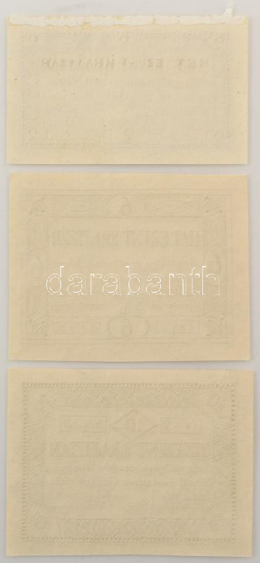 DN (1849) Az Erdélyi Főhadipénztár váltójegyeinek teljes, modern nyomatú sorozata "Körösladányi krajcárok": 2-6-10kr névértékek, a 2kr hátlapjának felső részén ragasztónyom T:UNC,AU / Hungary ND (1849) Modern print of the Transylvanian Main Military Treasury's notes, the so-called "Körösladányi krajcárok": 2-6-10 Kreuzer denominations, the 2 Kreuzer with gluemark at the upper edge C:UNC,AU