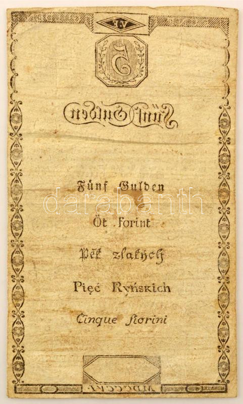 1806. 5G "Bécsi városi bankócédula" vízjeles papíron T:F fo.... https://www.darabanth.com/de/41-Gross-Auktion/41.1/Numismatik/Ungarische-Banknoten~16829/1806-5G-Becsi-varosi-bankocedula-vizjeles-papiron-TF-fo-Habsburg-Monarchy-1806-5-Gulde~II2992899