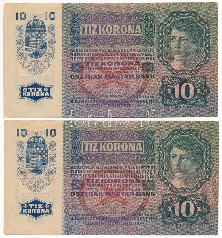 1915. 10K (2x) sorszámkövetők "1215 896961 - 1215 896962" T:... https://www.darabanth.com/de/41-Gross-Auktion/41.1/Numismatik/Ungarische-Banknoten~16829/1915-10K-2x-sorszamkovetok-1215-896961-1215-896962-TAU-Hungary-1915-10-Korona-2x-con~II3001048
