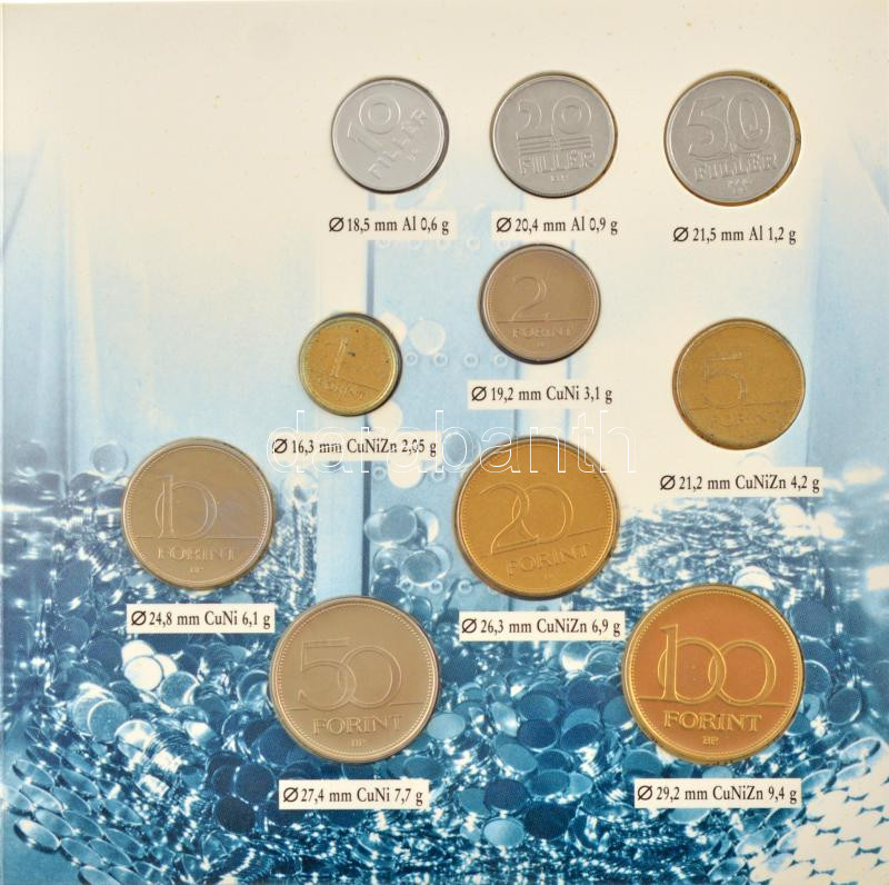 1996. 10f-100Ft (10xklf) "Magyarország pénzérméi" forgalmi sor dísztokban . A belső tokon a ragasztás részben elengedett. T:PP patina / Hungary 1996. 10 Fillér - 100 Forint (10xdiff) "Magyarország pénzérméi (Coins of Hungary)" coin set in case. The gluing on the inner case has partially loosened. C:PP patina Adamo FO29.3