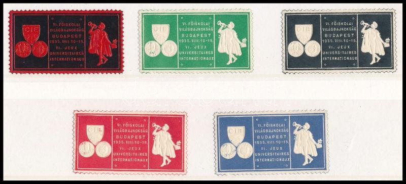 1935 VI. Főiskolai VB Budapest 5 klf levélzáró / 5 labels https://www.darabanth.com/de/41-Gross-Auktion/41.1/Philatelie-und-Postgeschichte-Ausland/Paraphilatelie~16826/1935-VI-Foiskolai-VB-Budapest-5-klf-levelzaro-5-labels~II2996446