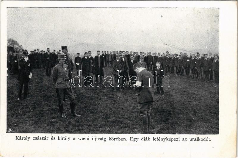 IV. Károly császár és király a wieni ifjúság körében. Egy diák lefényképezi az uralkodót / Charles I of Austria