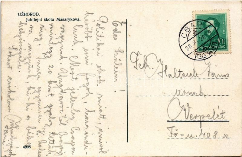 Beschreibung: 1938 Ungvár, Uzshorod, Uzhhorod, Uzhorod; Jubilejní skola Masarykova / iskola / school