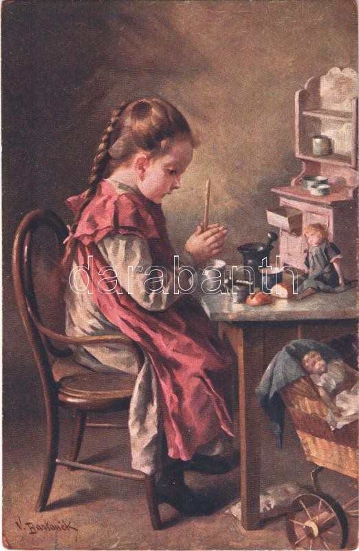 Malá nospodynka / La petite femme / Children art postcard, girl s: V. ... https://www.darabanth.com/de/410-Fernauktion/410.0/Ansichtskarten/Kinder~1500023/Mala-nospodynka-La-petite-femme-Children-art-postcard-girl-s-V-Bartonek-EB~II2447553