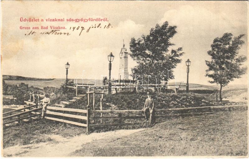 Beschreibung: 1907 Vízakna, Salzburg, Ocna Sibiului; sós gyógyfürdő, kálvária. Takács Jenő kiadása / spa calvary