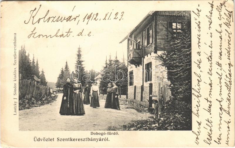 Beschreibung: 1912 Szentkeresztbánya, Vlahita Noua, Minele Lueta (Szentegyháza, Vlahita); Dobogó-fürdő, hölgyek. Lántzky J. Sándor kiadása / spa, bath, ladies (EK)
