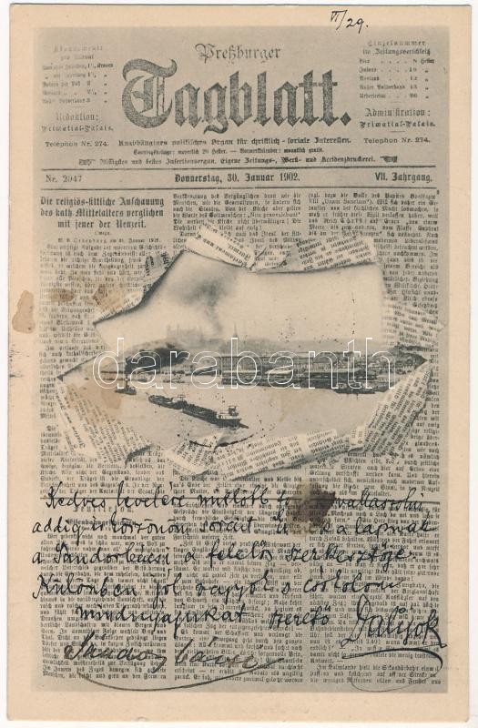 1904 Pozsony, Pressburg, Bratislava; Pozsonyi napilap montázs reklámla... https://www.darabanth.com/de/410-Fernauktion/410.0/Ansichtskarten/Slowakei~1500007/1904-Pozsony-Pressburg-Bratislava-Pozsonyi-napilap-montazs-reklamlapja-Bediene-dich-allein-P~II2548073