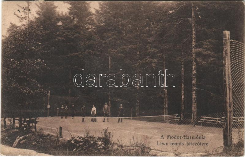 Beschreibung: 1916 Modor-Harmónia, Modor, Modra; Lawn tenisz játszótere. Laczkovich Róbert kiadása / tennis court