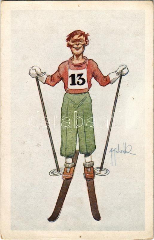 Wintersport / ski, winter sport art postcard. s: F. Schenk (EK) https://www.darabanth.com/de/410-Fernauktion/410.0/Ansichtskarten/Sport~1500053/Wintersport-ski-winter-sport-art-postcard-s-F-Schenk-EK~II2001490