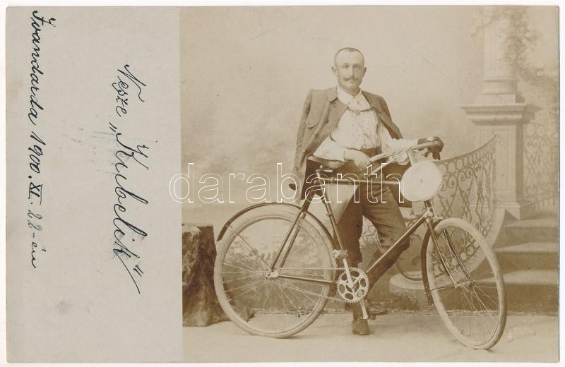 1900 Ivándárda, férfi kerékpárral. photo https://www.darabanth.com/de/410-Fernauktion/410.0/Ansichtskarten/Ungarn~1500005/1900-Ivandarda-ferfi-kerekparral-photo~II2548005