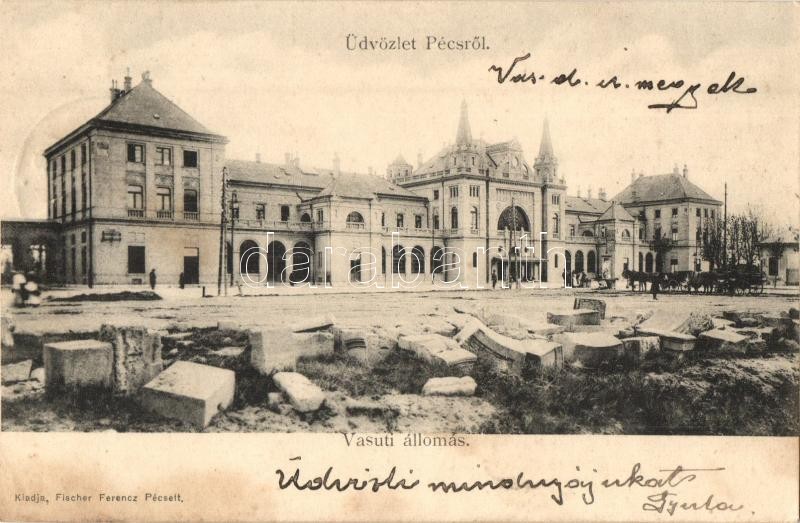 1905 Pécs, Vasútállomás, lovaskocsik, építési terület. Kiadja Fischer ... https://www.darabanth.com/de/410-Fernauktion/410.0/Ansichtskarten/Ungarn~1500005/1905-Pecs-Vasutallomas-lovaskocsik-epitesi-terulet-Kiadja-Fischer-Ferenc-fl~II1924478