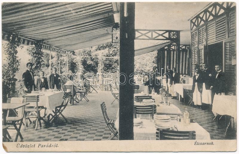 1909 Parád, Étcsarnok fedett terasza, pincérek (ázott / wet damage) https://www.darabanth.com/de/410-Fernauktion/410.0/Ansichtskarten/Ungarn~1500005/1909-Parad-Etcsarnok-fedett-terasza-pincerek-azott-wet-damage~II2433372