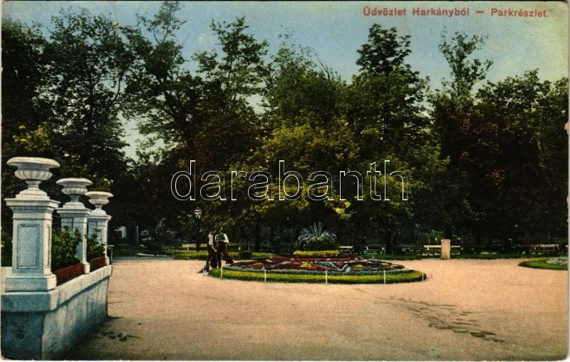 Beschreibung: 1916 Harkányfürdő, park (ázott / wet damage)