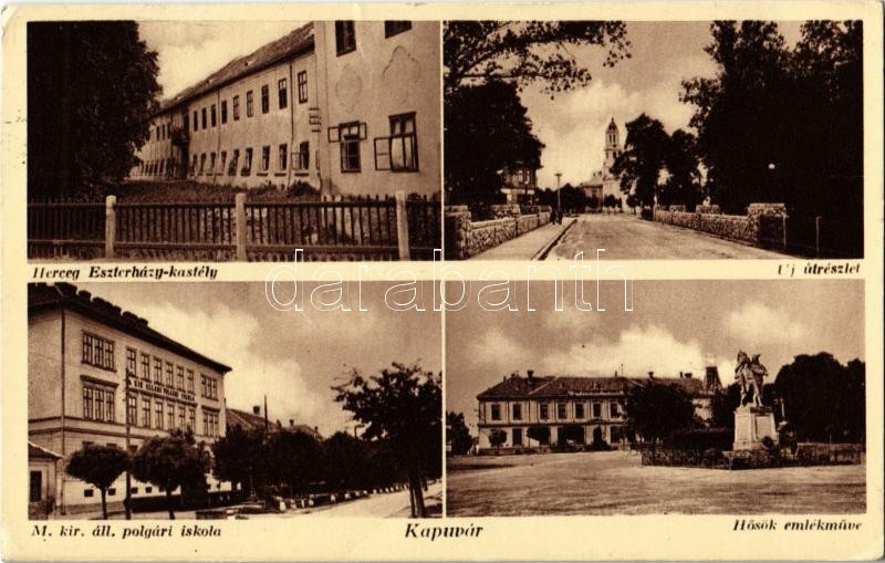 1940 Kapuvár, Herceg Esterházy kastély, új út, M. kir. állami polgári ... https://www.darabanth.com/de/410-Fernauktion/410.0/Ansichtskarten/Ungarn~1500005/1940-Kapuvar-Herceg-Esterhazy-kastely-uj-ut-M-kir-allami-polgari-iskola-Hosok-szobra-~II2125620