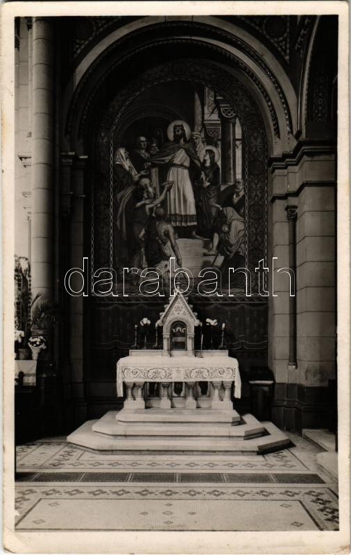 Beschreibung: 1941 Budapest IX. Ferencváros, Bakáts téri Assisi Szent Ferencről nevezett plébániatemplom Szent István oltára (festette Lotz Károly) (EK)